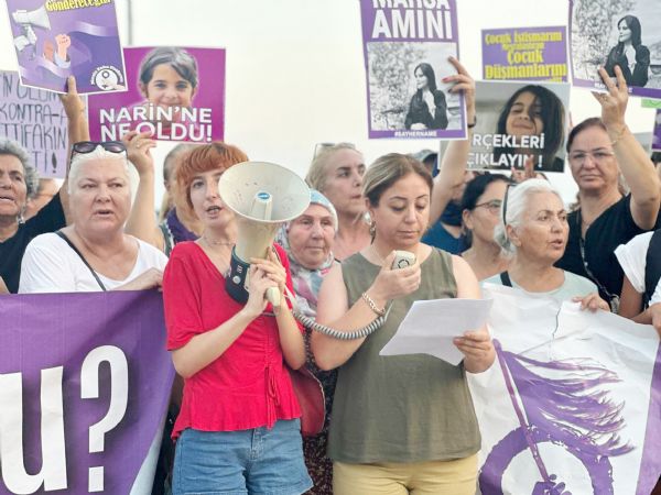 Narin Güran cinayetine değinerek çocuklar için güvenliğin sağlanmadığını savunan Göksoy, “Narin’in 21 Ağustos’ta kaybolmasının ardından haftalar sonra ölü bedeninin bulunması bu çürümüş düzeni en çıplak haliyle gözler önüne seriyor. Narin kutsal aile, tarikat, devlet ilişkisinde kaybedilen, katledilen çocuklardan sadece biri. Bu ülke adeta kayıp çocuklar ülkesi olmuş durumda. TÜİK’in en son açıkladığı 2016 yılı verilerine göre Türkiye’de kayıp çocuk sayısı 104 bin 531. Zaten 2016’dan bu yana da veriler açıklanmıyor. Bizler Narin için adalet talebinin bu ülkedeki tüm çocuklar için adalet talebi olduğu bilinciyle Narin için adalet talebimizi sürdürecek ve Narin’e ne oldu demeye devam edeceğiz. Çocuk istismarına, çocuk cinayetlerine karşı sokaktayız ve çocukların güvenli bir ortamda, istismardan uzak büyüme haklarını savunuyoruz” ifadelerini kullandı.