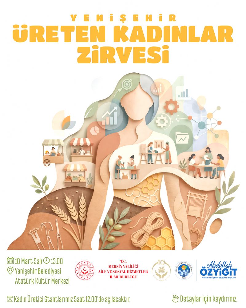 Kadın üreticilerin emeklerini sergileyeceği stantlarla renklenecek olan etkinlik, girişimci adaylarına yol gösterecek uzman isimleri bir araya getirecek. Mersin Yenişehir Belediyesi Kadın ve Aile Hizmetleri Müdürlüğü ile Aile ve Sosyal Hizmetler İl Müdürlüğü iş birliğinde “Yenişehir Üreten Kadınlar Zirvesi” düzenleniyor. Kadın girişimciliğini desteklemek, üretici kadınların görünürlüğünü artırmak ve ilham veren başarı hikâyelerini paylaşmak amacıyla gerçekleştirilecek zirve, 10 Mart Salı günü saat 13.00’te Yenişehir Belediyesi Atatürk Kültür Merkezi’nde yapılacak. Saat 12.00’de kadın üreticilerin stant açarak el emeği ürünlerini sergilemesiyle başlayacak program, zirve oturumlarıyla devam edecek.
