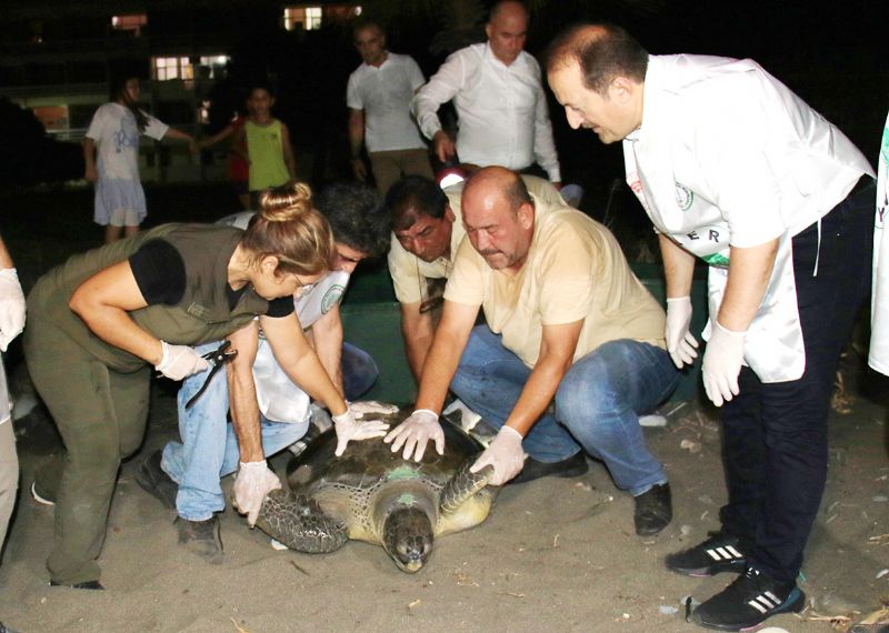 Yaralı kaplumbağa tedavi sonrası tekrar denizle buluştu